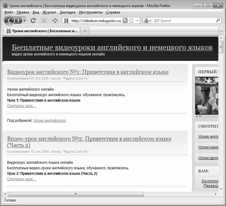 Рис. 1.4. Видеоуроки на http://videokurs.radugaslov.ru