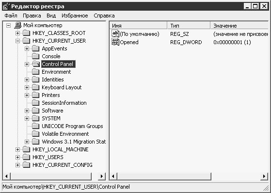 Как известно, реестр Windows XP является одной из главных составных частей операционной системы, во многом определяющей ее работу. Однако, несмотря на это, многие пользователи эксплуатируют Windows XP, даже не догадываясь о существовании системного реестра. В первую очередь это обусловлено тем, что некоторые наиболее часто используемые пользовательские настройки доступны для редактирования за пределами реестра – к ним относятся, например, настройки, переход в режим редактирования которых выполняется при активизации функции Пуск►Панель управления. Рядовой «непродвинутый» пользователь может даже не догадываться, что при изменении параметров настройки мыши, клавиатуры, монитора и т. п. соответствующие изменения автоматически переносятся в системный реестр; но справедливости ради следует отметить, что ему и не всегда нужно об этом знать, поскольку это уже сфера деятельности системного администратора.