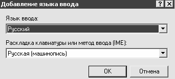 В верхней части данного окна в поле Язык ввода по умолчанию следует выбрать язык, который будет использоваться по умолчанию при загрузке компьютера. Для добавления в систему нужного языка необходимо в данном окне нажать кнопку Добавить – в результате на экране откроется диалоговое окно, в котором из соответствующих раскрывающихся списков выбираются требуемый язык и раскладка клавиатуры (рис. 1.13).