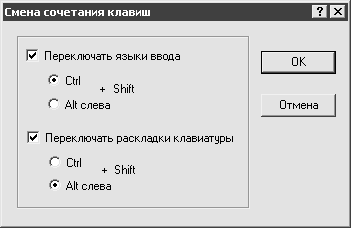 Чтобы изменить переключение между языками ввода, необходимо нажать кнопку Смена сочетания клавиш – в результате на экране откроется окно, приведенное на рис. 1.15.