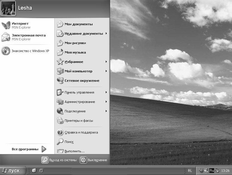 Если в процессе установки системы был задан пароль администратора (соответствующее окно изображено на рис. 1.18), то для входа в систему необходимо будет ввести этот пароль; если же пароль не задан, то после перезагрузки на экране отобразится интерфейс Windows XP, изображенный на рис. 1.21.