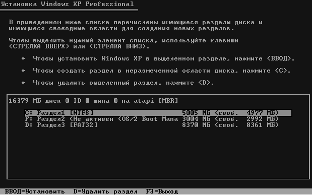 На следующем этапе необходимо выбрать раздел жесткого диска, в который будет производиться установка операционной системы (рис. 1.5).