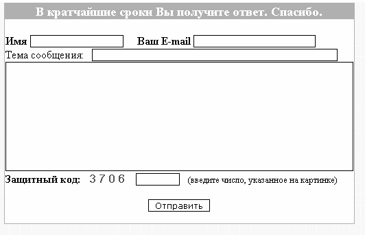• Защитный код – в данном поле необходимо ввести код, указанный рядом. Защитный код генерируется автоматически при каждом открытии данной страницы, его ввод необходим для гарантии того, что сообщение отправляется человеком, а не программой или роботом.