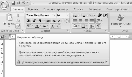 Более подробно пользовательский интерфейс и инструментарий программы рассматриваются ниже, в главе «Осваиваем пользовательский интерфейс Word 2007».