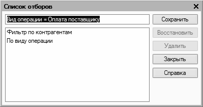 Текущую настройку фильтра можно сохранить, воспользовавшись кнопкой Отборы. При нажатии на данную кнопку на экране открывается окно, изображенное на рис. 1.25.