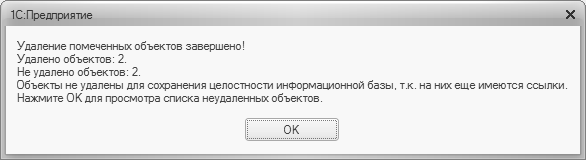 Если в процессе удаления были удалены не все выбранные для этого объекты, то после нажатия кнопки ОК (см. рис. 2.6) программа выведет на экран список неудаленных объектов.