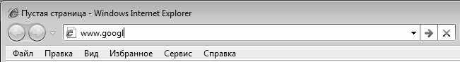 Открывать веб-страницы в Internet Explorer 8 можно разными способами. Самый распространенный из них – ввод адреса в адресную строку с клавиатуры (рис. 2.8).