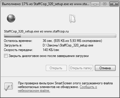 Чтобы загрузить (скачать) объект, нажмите в данном окне кнопку Сохранить. В результате на экране отобразится окно (см. рис. 2.13), в котором по уже известным нам правилам нужно указать путь для сохранения. После нажатия в данном окне кнопки Сохранить начнется процесс скачивания, информация о котором будет демонстрироваться на экране (рис. 2.16).