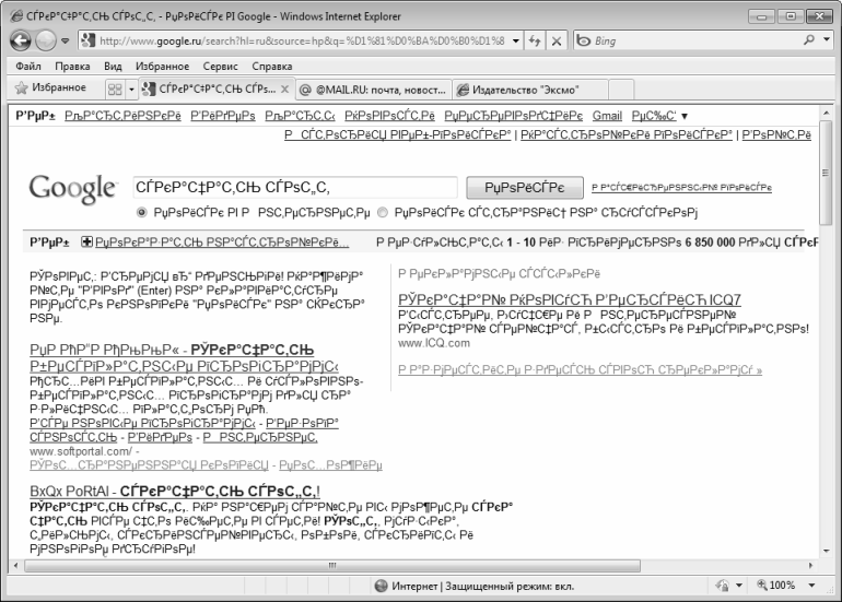 Иногда бывает так, что при открытии веб-страницы ее содержимое отображается в виде набора совершенно непонятных символов (рис. 2.18).