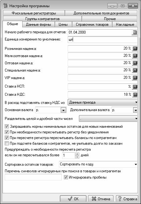 Настройка параметров, определяющих общую направленность учета, осуществляется на вкладке Общие (рис. 1.2), которая открывается по умолчанию.