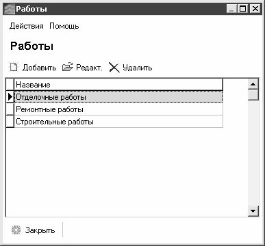 В каталоге работ осуществляется ввод, редактирование и хранение информации обо всех выполняемых работах. Для перехода в режим работы с данным каталогом следует выполнить команду Справочники►Каталог, и в открывшемся окне перейти на вкладку Работы (рис. 1.8).