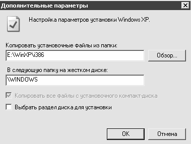 В соответствующих полях данного окна указывается, откуда и куда копировать установочные файлы. В нашем примере параметры этого окна следует оставить без изменений.