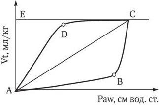 A – начало вдоха/конец выдоха; B – точка открытия легких; C – конец вдоха/начало выдоха (максимальные PIP и Vt); D – точка закрытия легких