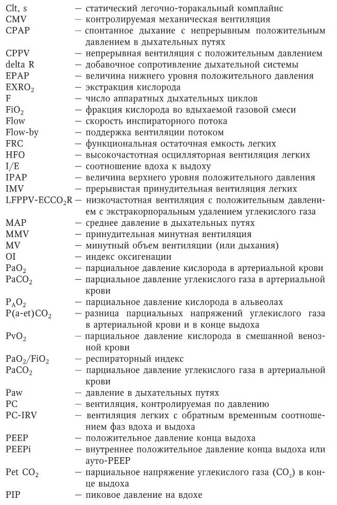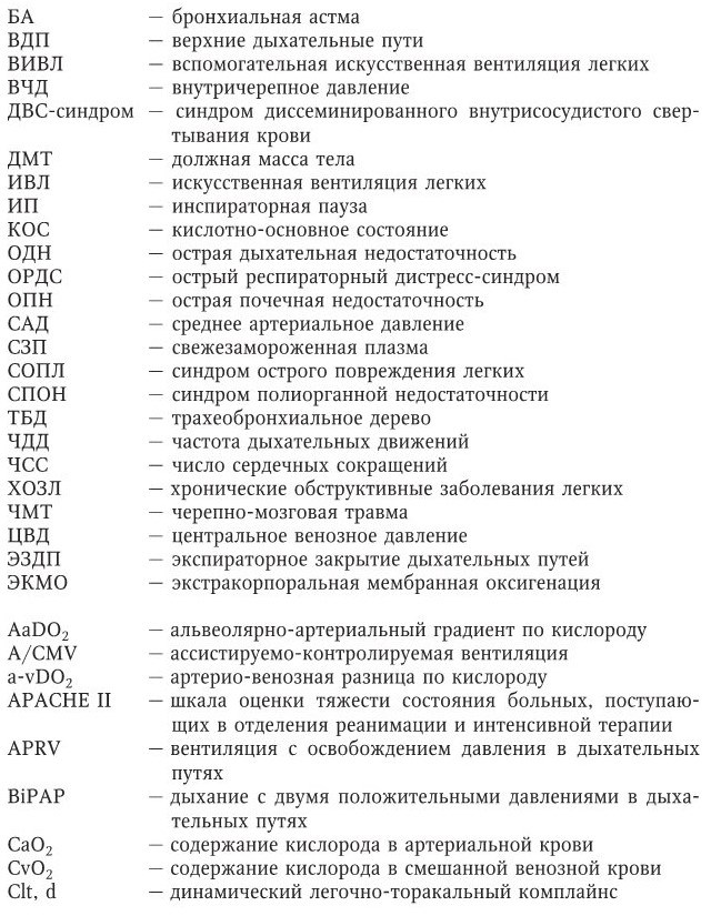 Независимо от варианта вентиляции легких обязательно используется положительное давление конца выдоха, чтобы предотвратить альвеолярный коллапс в течение фазы выдоха и таким образом улучшить и поддерживать вентиляционно-перфузионные отношения в легких (Slutsky A. S., 1994; Petty T. L., 1996; Levy M. M., 2004). Применение РЕЕР также позволяет избегать необходимость использования высоких фракций кислорода во вдыхаемой газовой смеси и высоких давлений в дыхательных путях, снизить амплитуду между пиковым давлением на вдохе и давлением в фазе выдоха, а иногда величину Vt и число аппаратных дыхательных циклов (F), что уменьшает агрессивность ИВЛ (Thompson B. T. [et al.], 2001; Slutsky A. S., 2001; Brower R. [et al.], 2003).