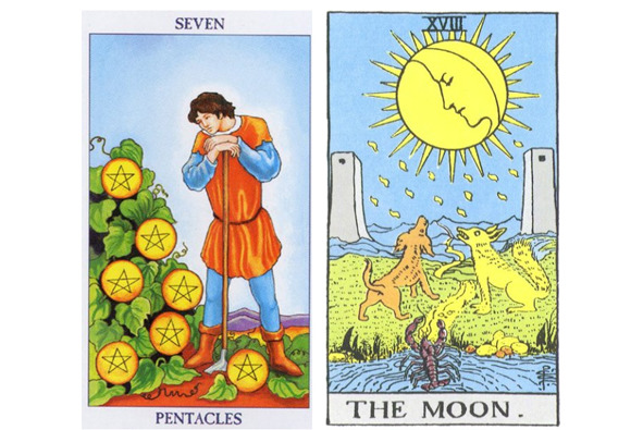 Следуя такому подходу Семерку Дисков карту можно счесть картой, предсказывающей прибыль. Поскольку на ней человек стоит и смотрит на свой урожай. Много трудился, теперь продаст плоды и разбогатеет! Интуитивно полученный вывод, не хуже многих других, хотя настоящая суть изображенного на карте – бедный землепашец, усилия которого не приносят заметного дохода.