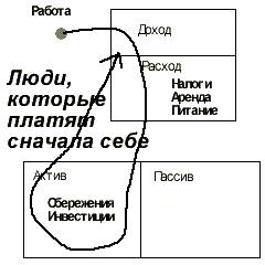 Понимаете, о чем я? Схема № 1 отражает действия человека, который платит сначала себе. Каждый месяц такие люди помещают деньги в графу «актив», прежде чем выплатят свои ежемесячные расходы.