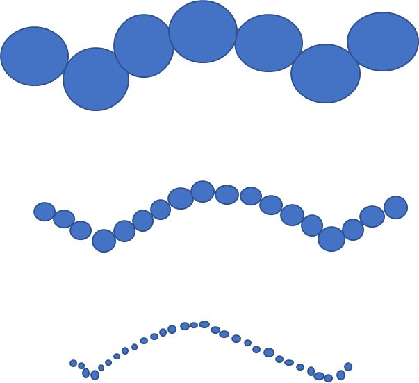 Рис. 1. Волны одинаковой длины, состоящие из разных по размеру частиц.