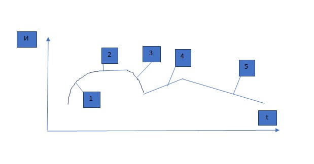 Рис. 4 Изменения человеческой информации И со временем t в цикле на рис. 1