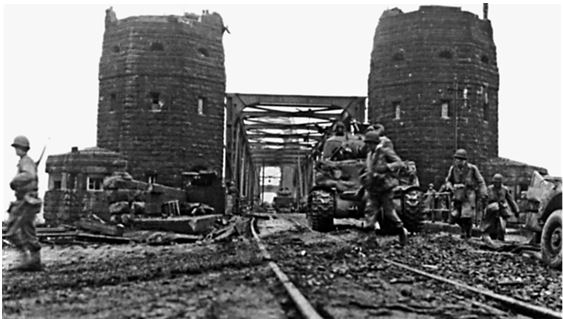 Американские солдаты у башенок знаменитого «моста Людендорфа». Захват моста через Рейн у Ремагена не только облегчил союзникам наступление на восток, но и определил их стратегию