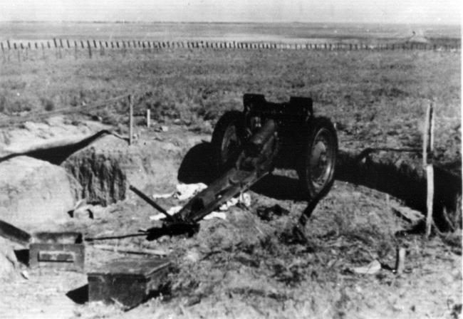 Позиция советской 76-мм полковой пушки обр. 1927 г. на Перекопе (NARA).