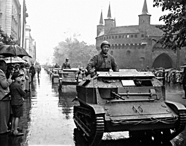 Польские танкетки «ТК-3» на довоенном параде в Кракове. В 1939 г. они имели уже достаточно условную боевую ценность.