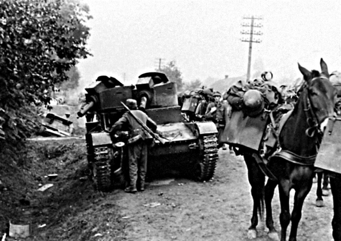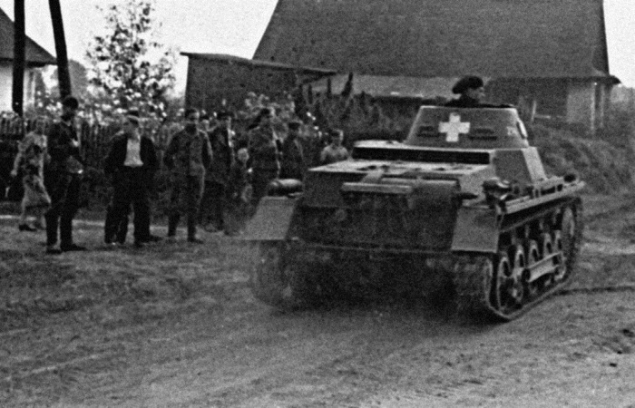 «Pz.I» на дорогах блицкрига в Польше. В 1939 г. немецкие танки обозначались белым крестом, облегчавшим прицеливание польским наводчикам противотанковых пушек.