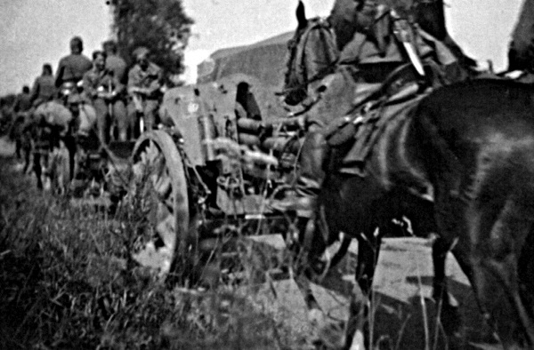 105-мм гаубицы «leFH18» на гужевой тяге на марше.