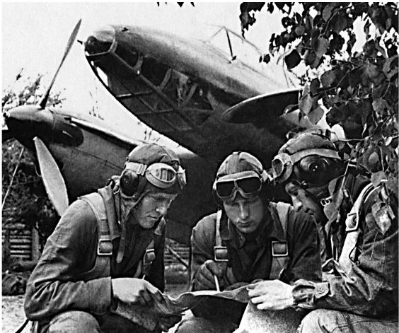 Экипаж бомбардировщика Пе-2 уточняет боевую задачу. За изящество обводов этот самолет немцы поначалу принимали за французский «Потез»