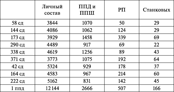 Численность личного состава и стрелкового вооружения соединений 33-й армии перед началом операции 12–17.10.43 г[10].