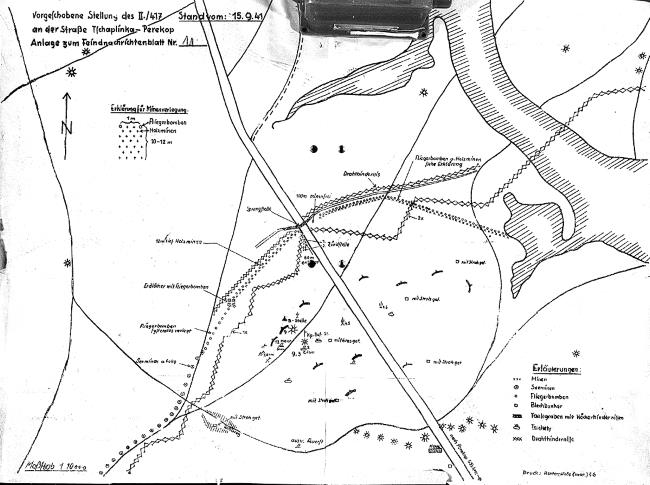 Рисунок из документов 46-й пд с обозначением инженерных сооружений на Перекопе, преграждающих путь из Чаплинки в Перекоп (NARA).