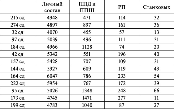 Численность стрелковых дивизий в подготовительный период операции подтянули до приемлемого уровня (см. таблицу).