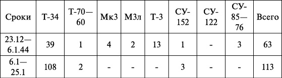 Потери БТ и МВ Западного фронта В период с 23 декабря 1943 г. по 25 января 1944 г[34].