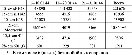 Расход боеприпасов тяжелой артиллерии немецкой 3-й танковой армии в январе 1944 г[42].