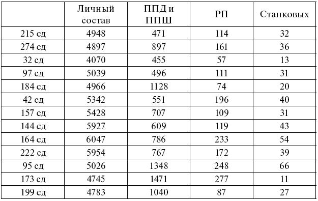 Численность стрелковых дивизий в подготовительный период операции подтянули до приемлемого уровня (см. таблицу).