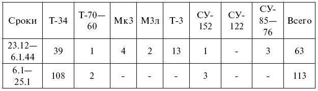 ПОТЕРИ БТ И МВ ЗАПАДНОГО ФРОНТА В ПЕРИОД С 23 ДЕКАБРЯ 1943 Г. ПО 25 ЯНВАРЯ 1944 Г[34].