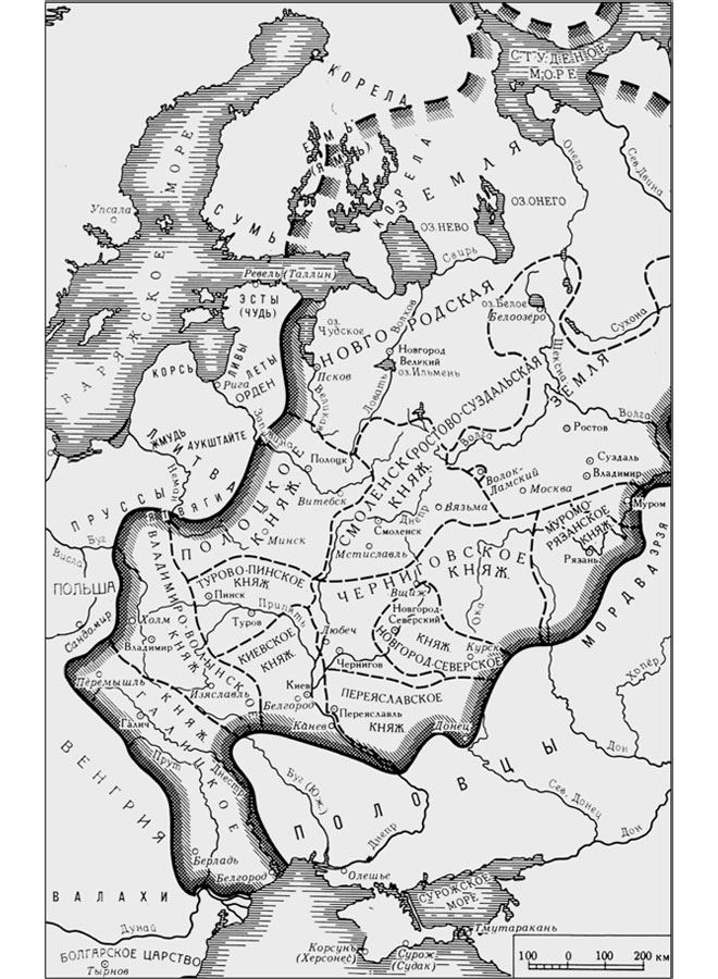 Карта 1. Общая схема русских княжеств XII века (по И. А. Голубцову)