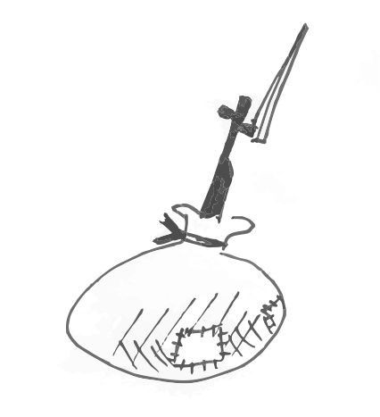 Хоть в мешок ее зАКУТАЙ,Все равно торчит АКУТУС.Вы думаете, шило закутали мешком?Нет, «трехлинейку» Мосина с классическим штыком.
