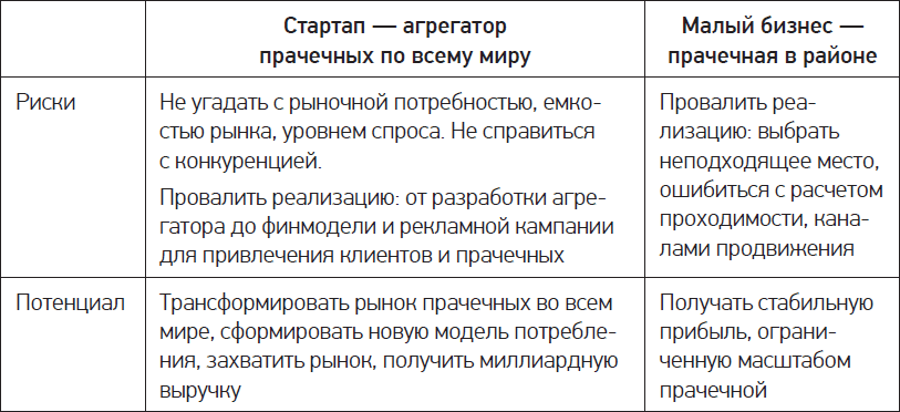 Заметьте: рассматривая потенциал стартапов, я говорю лишь о выручке, но не о прибыли. Дело в том, что стартапы часто убыточны, потому что быстро растут. Вся выручка уходит на поддержку роста, а инвестиции – на покрытие убытков. В итоге прибыли не остается. А вот в малом бизнесе потенциал кроется как раз в стабильной прибыли.