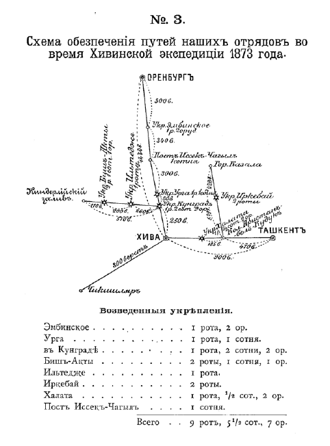 3) Заключить контракт с купцом Мяконьковым на поставку 6000 верблюдов от Оренбургских киргизов, по 110 рублей за верблюда, с поставкой их в Нилене-Эмбинский пост, откуда эти верблюды должны доставляться в Красноводск уже ведением военного начальства.