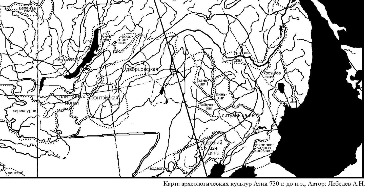 Рис.2. Схема археологических культур восточной части Азии 730 г. до н.э.