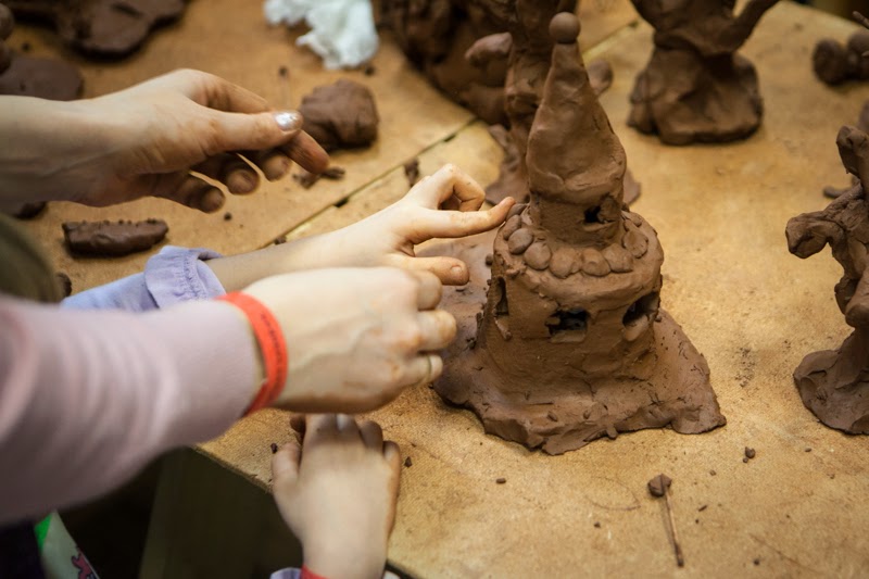 Хорошо, если студия – это не только комната для занятий с детьми, но и собственная мастерская учителя. Тогда для детей это не просто класс, где их учат лепить поделки, которые затем встанут на полку, а «Место, где живет глина». Дети, особенно совсем маленькие, должны иметь возможность свободно передвигаться по мастерской, самостоятельно брать готовые игрушки и инструменты. Таким образом они привыкают, что глина – это часть окружающего мира, часть жизни. Что глина есть, имеет место, и из нее можно слепить все, что хочется. Как именно слепить – уже второй вопрос, и он решается в рабочем порядке.