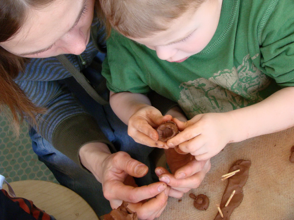 Обычно я убеждаю родителей, что детей не нужно специально учить технике лепки. Но иногда все же бывает полезно быстро и точно показать ребенку конкретный способ лепки чего-то конкретного. Для этого нужно синхронно с ребенком слепить эту вещь в двух экземплярах.