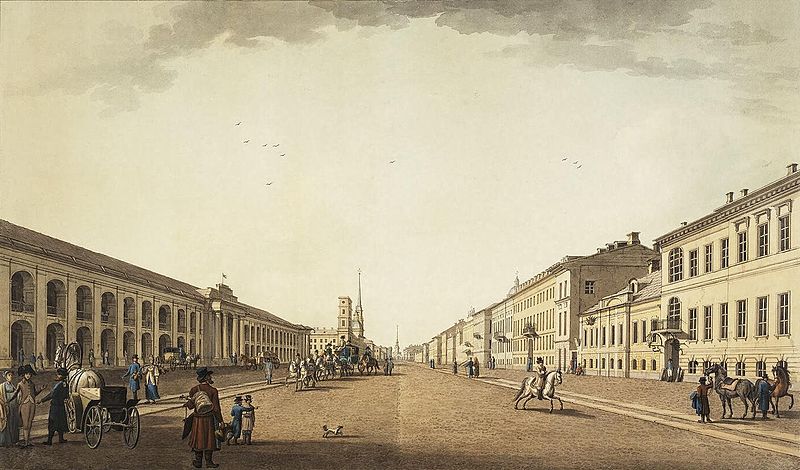 *В три часа – новая перемена. На Невском проспекте вдруг настает весна: он покрывается весь чиновниками в зеленых вицмундирах. Голодные титулярные, надворные и прочие советники стараются всеми силами ускорить свой ход. Молодые коллежские регистраторы, губернские и коллежские секретари спешат еще воспользоваться временем и пройтиться по Невскому проспекту с осанкою, показывающею, что они вовсе не сидели шесть часов в присутствии. Но старые коллежские секретари, титулярные и надворные советники идут скоро, потупивши голову: им не до того, чтобы заниматься рассматриванием прохожих; они еще не вполне оторвались от забот своих; в их голове ералаш и целый архив начатых и неоконченных дел; им долго вместо вывески показывается картонка с бумагами или полное лицо правителя канцелярии.