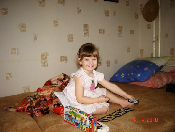 Вика (3,5 года) играет в игру «Немо». У неё всё хорошо получается. Она довольна.