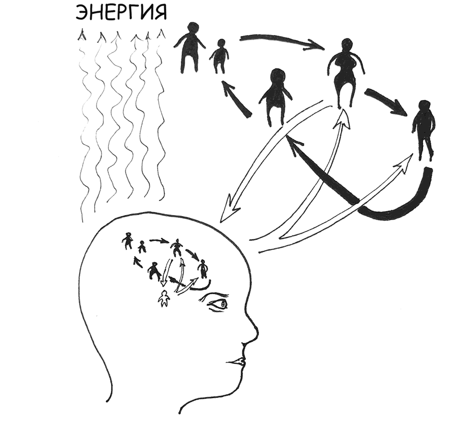 Рис. 9. Чрезмерный расход энергии при развязывании «узлов социализации» как возможная причина депрессии