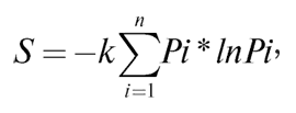 где H(x) – средняя энтропия сообщения, иногда обозначаемая также как мера неопределенности какого-либо события, или даже как количество информации, Pi – вероятность отдельного события i. Основание логарифма в принципе может быть любым больше 1: в двоичных информационных системах – 2, математические статистики, использующие формулу в различных научных дисциплинах, в том числе биологических и клинических, часто используют натуральный логарифм.