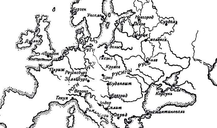 Распространение русов по Восточной и Западной Европе и их широкая известность среди современников и хронистов именно под этим именем могут быть объяснены только тем, что это было самоназванием руси – её эндоэтнонимом. И самоназванием древним, возникшим задолго до появления на исторической сцене скандинавов и прибалтов.