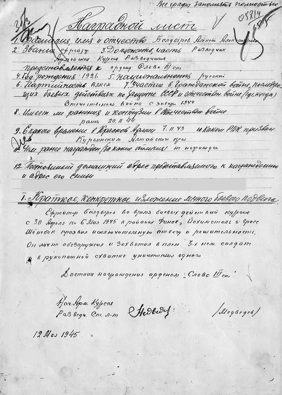 Наградной лист