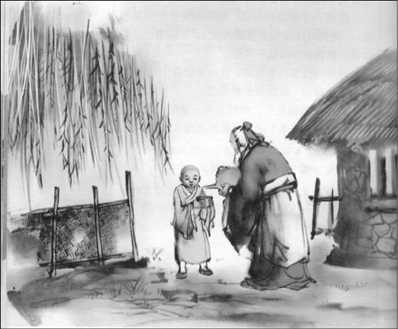 Человек поклонился и поблагодарил Будду: «Благодаря вашему высочайшему милосердию я избавился от всех пут и иллюзий и вступил на Путь».