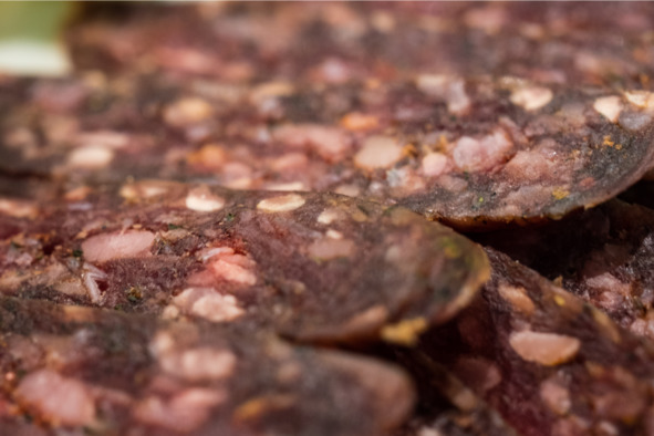 Можно сказать, что суджук – брат луканки. Если луканку, как правило, делают из свинины с небольшим добавлением говядины, то суджук, наоборот, готовят именно из говядины, и лишь иногда добавляют немного свинины. В нем чаще можно встретить баранину или конину. Не удивительно, что он гораздо жестче и в нем меньше жира. Но и специй туда тоже кладут меньше.